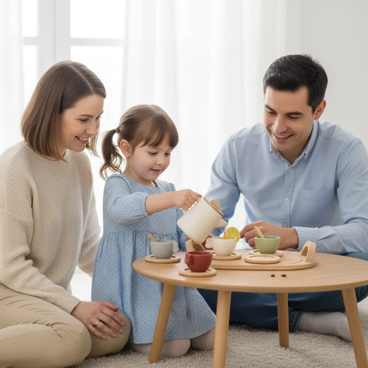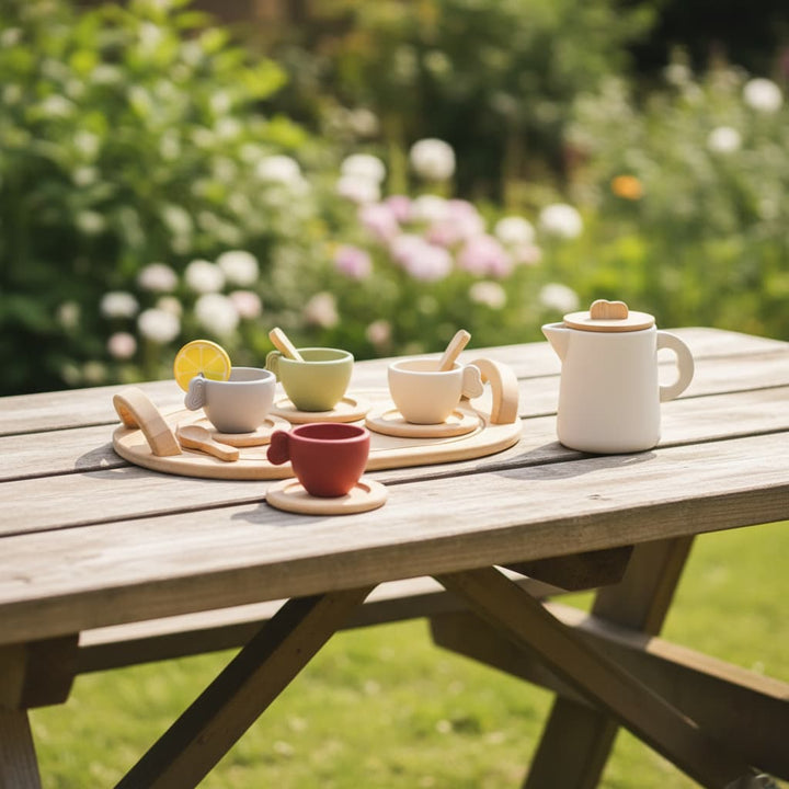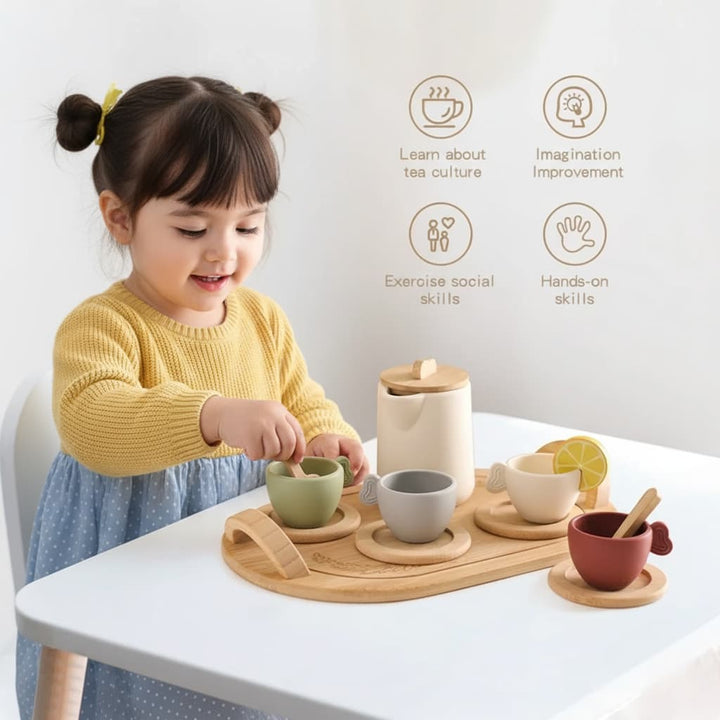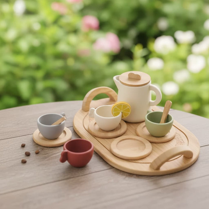 Introduce your child to the joys of pretend play with Mini Tea Mates, a charming Montessori-inspired tea set designed for toddlers and preschoolers. Thoughtfully crafted with natural wood and soft silicone, this set invites little ones to pour, serve, and play while developing fine motor skills, creativity, and social confidence.