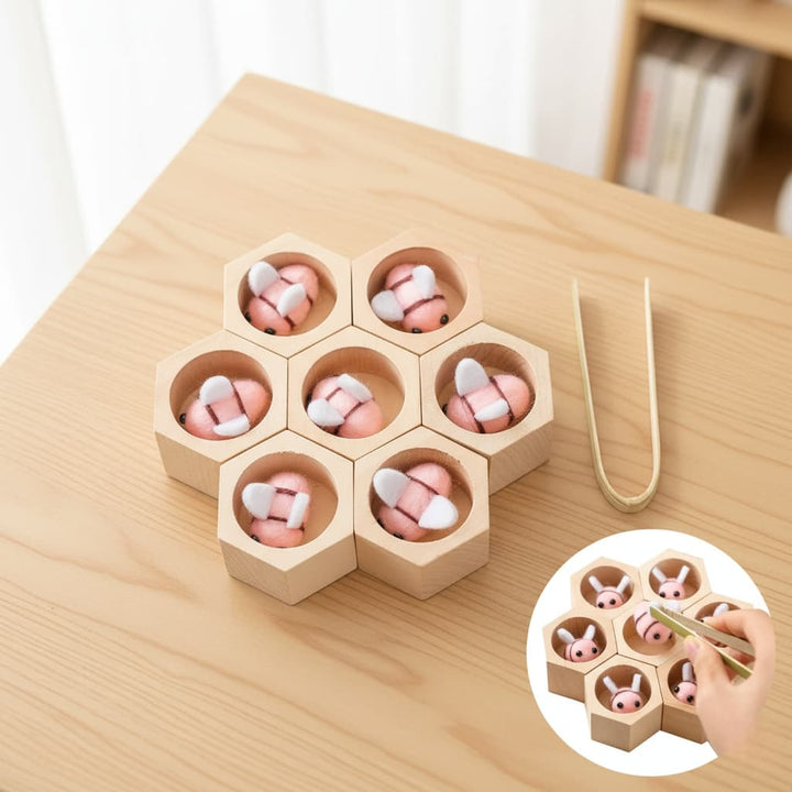 Introduce your child to the wonders of nature and learning with the Eco-Friendly Montessori Honeycomb Wooden Toy! This beautifully crafted educational toy features a charming beehive and adorable wooden bees, perfect for toddlers to sort, stack, and arrange. Made from eco-friendly basswood and designed to foster hand-eye coordination and fine motor skills, this Montessori-inspired toy engages children in a fun and educational way.